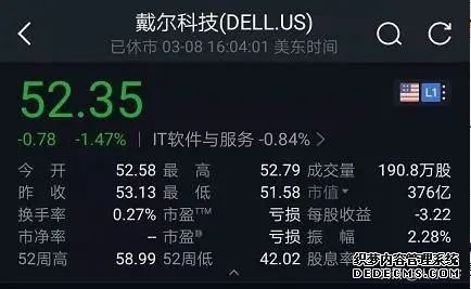 上圖:戴爾目前市值376億美元,市盈率狀態(tài)為醒目的虧損